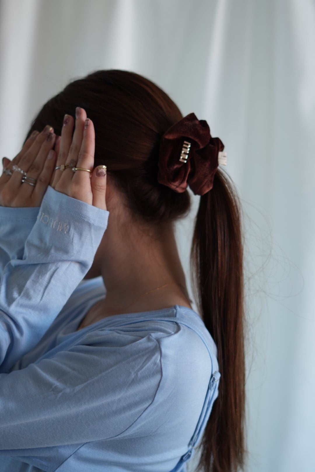 上品なベロア素材と程よいボリューム感で