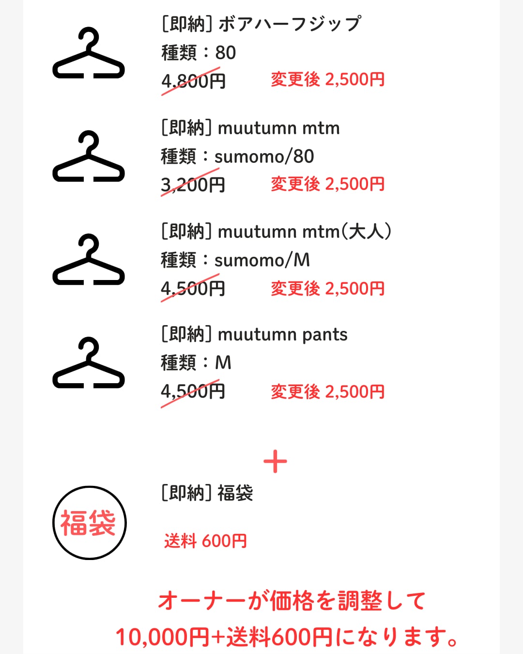 その後 金額を¥10,000に変更いたします。